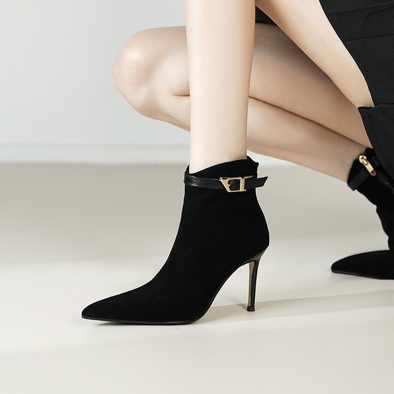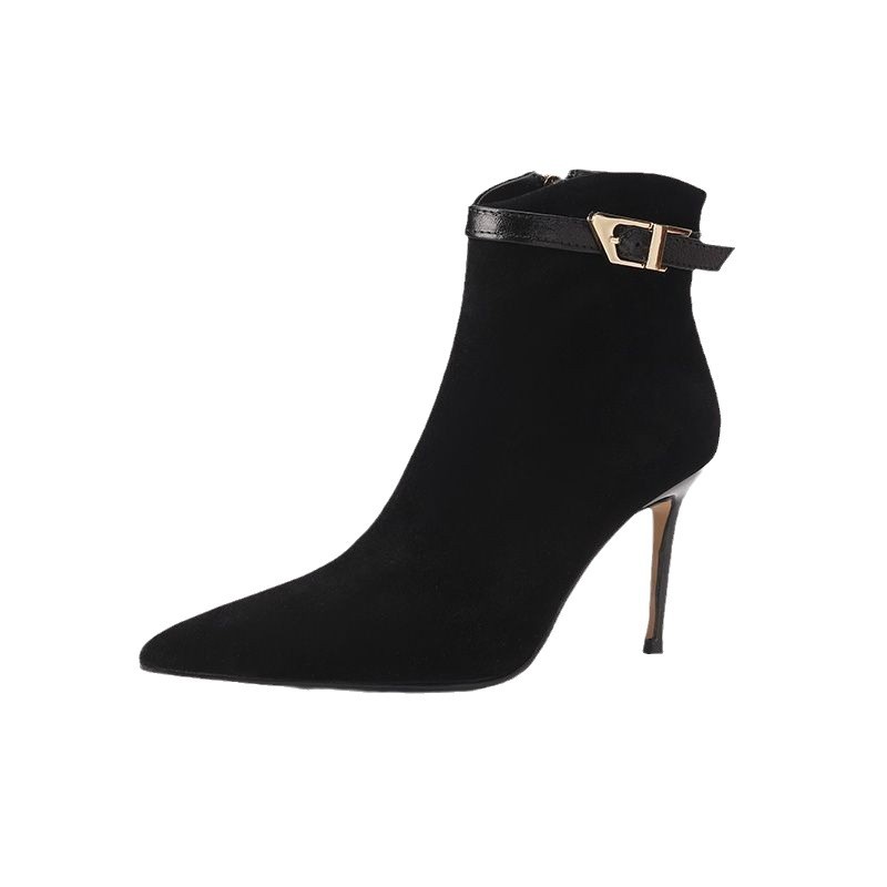 women’s autumn and winter temperament simple Martin boots thin heels slim nude boots without tiring high heels