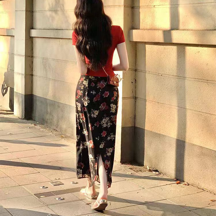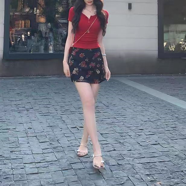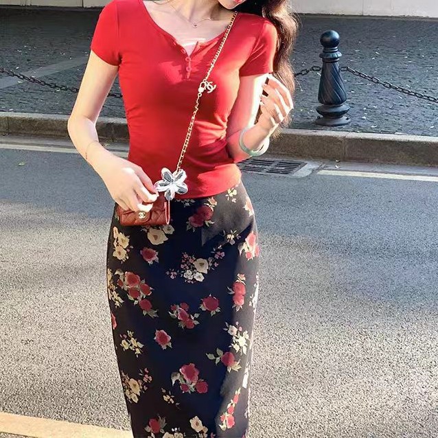 | color | Red top, floral short skirt, floral long skirt |
