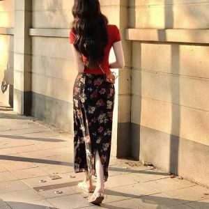 | color | Red top, Floral short skirt, Floral long skirt |